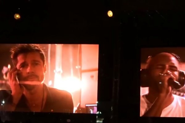 Pitt was shown on a monitor during singer-songwriter Frank Ocean's set.