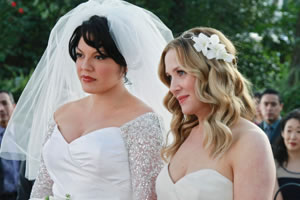 Photos released by the network this week show both women looking beautiful in white as they tie the knot during an outdoor ceremony. (Visit lesbian entertainment website AfterEllen.com for more photos.)