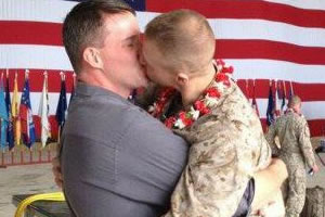 kissing his boyfriend after returning home from deployment has
