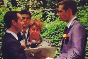 his partner Brian Walsh on Saturday in Vienna, Austria.