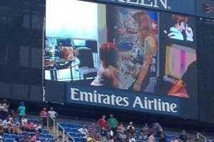 broadcast on the jumbotrons at the Arthur Ashe Stadium where the US