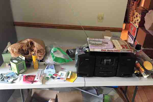 supplies, paint cans—it looked like a hardware store sidewalk sale.