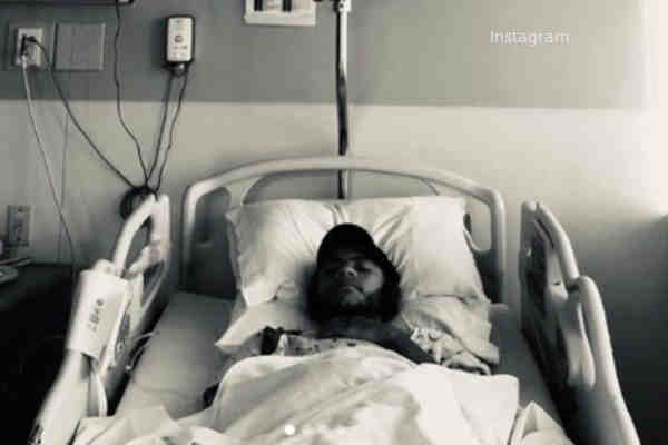 Instagram of himself lying in a hospital bed.