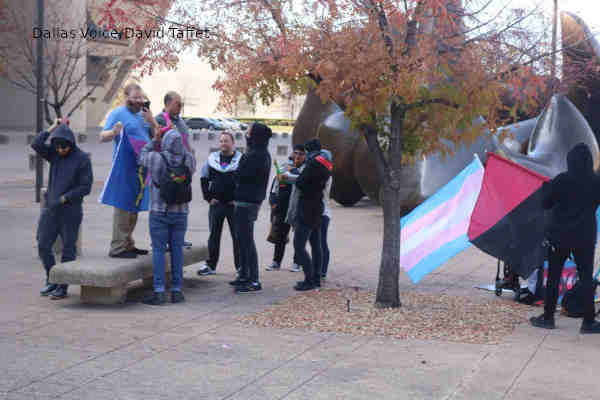 protested by about 20 members of the DFW Anti-Fascist League. About a