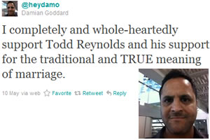 meaning of marriage,” Goddard tweeted Tuesday to his 359 followers.