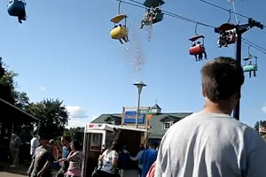 protesters riding in the fair's Sky Ride are seen showering the booth