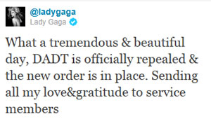 messaged, “Don't Ask Don't Tell is officially over. It's a good